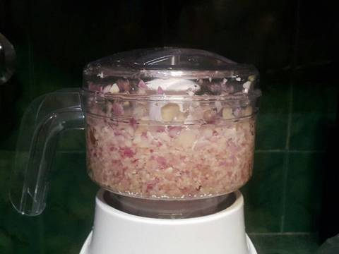 1. Haluskan bawang merah dan bawang putih.