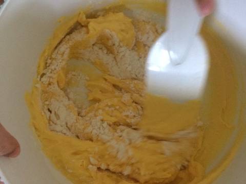 Kocok margarin, gula pasir, susu bubuk dan kuning telur hingga rata dan lembut, masukkan keju parut dan tepung terigu sedikit demi sedikit sambil diaduk hingga jadi adonan.